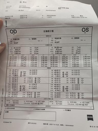 | 平均角膜曲率 (D) | 43.37 | 43.52 | 44以内不陡峭 | 角膜曲率正常,无圆锥角膜风险 |