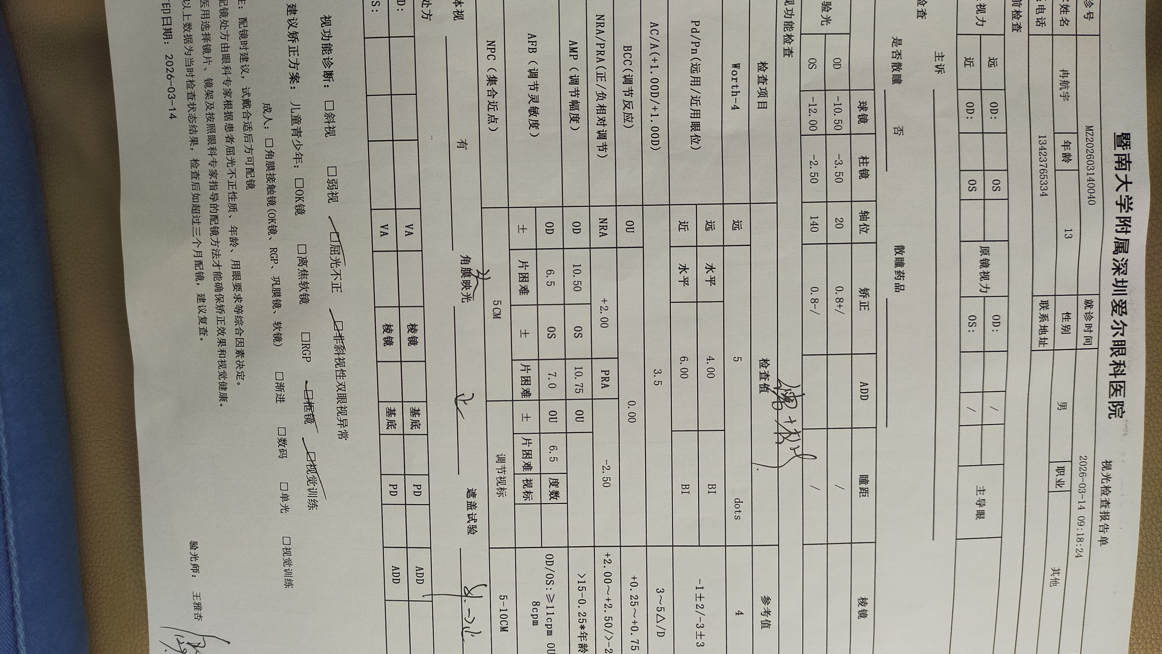 3. PRA绝对值仅1.5D(正常需≥2.5D),调节储备严重不足,AC/A值1.5偏低,提示调节与集合联动异常